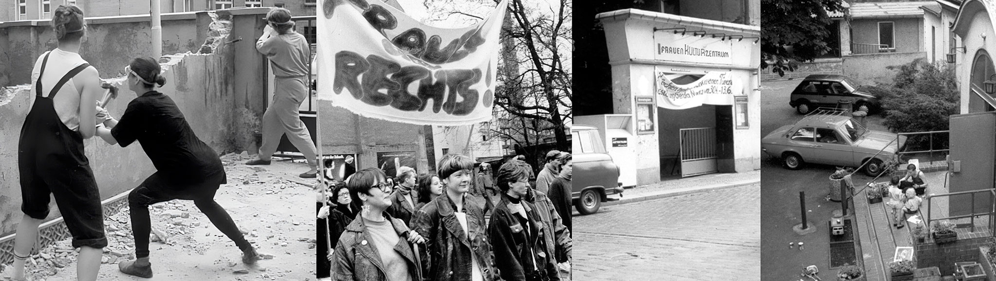 Aber der 1. Oktober 1990 – Datum der Vereinseintragung beim Amtsgericht Leipzig – wird, so das Archivmaterial, mit der Gründung des Frauenkultur e.V. gleichgesetzt. Nur sechs Tage später, am 7. Oktober 1990, wird das damals so genannte Frauenkulturzentrum in Schönefeld eröffnet. Zwei Sachverhalte, die in jeder Chronik eines Vereins zu finden sind. Wann gegründet, wann den Vereinsort, die Räume oder das Haus eröffnet? Dass diese beiden Zeitdaten die ganze Gründungsgeschichte der Frauenkultur Leipzig in sich tragen, erschließt sich erst auf den zweiten Blick. Die Gründung, einschließlich Eintragung im Vereinsregister, fand noch in der DDR statt; das Haus in der Löbauer Straße 49 wurde im Taumel der deutschen Wiedervereinigung am 03.10.1990 eröffnet. Ein Wechsel zwischen zwei Gesellschaftssystemen – eine Besonderheit, die nicht von den Hintergründen der Bürger:innenbewegung in der DDR zu lösen ist.